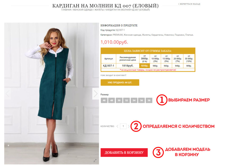 > 2) Определяемся с количеством товара.