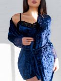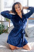 Халат с классическим дизайном и кружевными акцентами на рукавах. Использовать такую одежду можно круглый год. Изделие выполнено из бархата. Это комфортная и легкая ткань, не требующая трудоемкого ухода. Размерный ряд позволяет подобрать модель для любой комплекции.