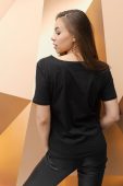 Согласны ли вы с мнением, что черный цвет – это нестареющая классика? Наверняка, у каждой девушки в гардеробе есть темные штаны, платье, блузка и шорты. Если же вы не относите себя к числу таких женщин, то самое время купить женскую футболку черного цвета с оригинальной набивкой ФУ 010КА-ИНГ в интернет-магазине «ОПТ-Мода».