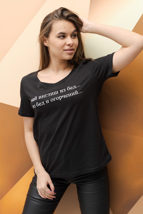 Согласны ли вы с мнением, что черный цвет – это нестареющая классика? Наверняка, у каждой девушки в гардеробе есть темные штаны, платье, блузка и шорты. Если же вы не относите себя к числу таких женщин, то самое время купить женскую футболку черного цвета с оригинальной набивкой ФУ 010КА-ИНГ в интернет-магазине «ОПТ-Мода».