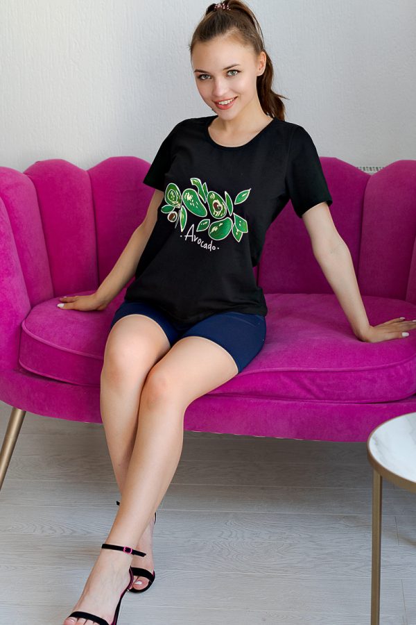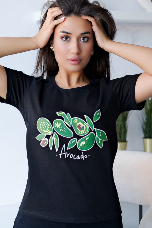 Самое время купить женскую футболку ФУ 022КЛ-АВО черного цвета с оригинальным принтом Авокадо в интернет-магазине «ОПТ-Мода».