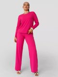 Стильный женский костюм из трикотажа с фактурой лапша (Фуксия) — это нарядная легкая одежда для лета, весны и осени. Брючный набор с широкими штанами палаццо, имеющими завышенную посадку на талии, со свитшотом с длинными рукавами и разрезами по бокам — мода 2025 года! Костюм доступен в больших размерах, также для беременных и полных женщин. Oversize форма костюмчика позволяет свободно двигаться и ощущать себя комфортно. Он идеально подойдет как для повседневного образа, так и на прогулочный отдых, спортивные занятия. Выбор девушек, которые ценят модные и яркие вещи. Набор доступен в разных цветах. Идеален как летний, так и весенний, осенний и демисезонный варианты для прогулок. Ткань комплекта — качественный трикотажный материал с вискозой. Носите костюм на прогулки, в офис, на вечеринки и семейные торжества. Вы можете носить брюки из набора не только с кофтой, входящей в комплект, но и с блузой с короткими или длинными рукавами, водолазкой, топом, подойдут как для подростков, так и для взрослых женщин. Набор доступен как для невысоких, так и для высоких девушек. Модный дизайн произведет отличное впечатление. Легкий трикотажный оверсайз — наряд — универсальный выбор для любого случая. Он станет отличным вариантом на вечернюю прогулку и офисную работу. Широкие брюки палаццо сочетаются с женственной блузкой. Однотонная двойка прекрасно подойдет для молодежных танцев или тренировок в зале. Крутой и популярный костюм подойдет мамам в дорогу, для домашнего отдыха или поездки на дачу. Современный и трендовый костюм станет красивой и удобной вещью в гардеробе! Подходит для девочек — подростков. Для школьников будет удобен в качестве повседневной одежды, для поездок и путешествий. Рубчик на штанах и кофте сохранит форму изделия.