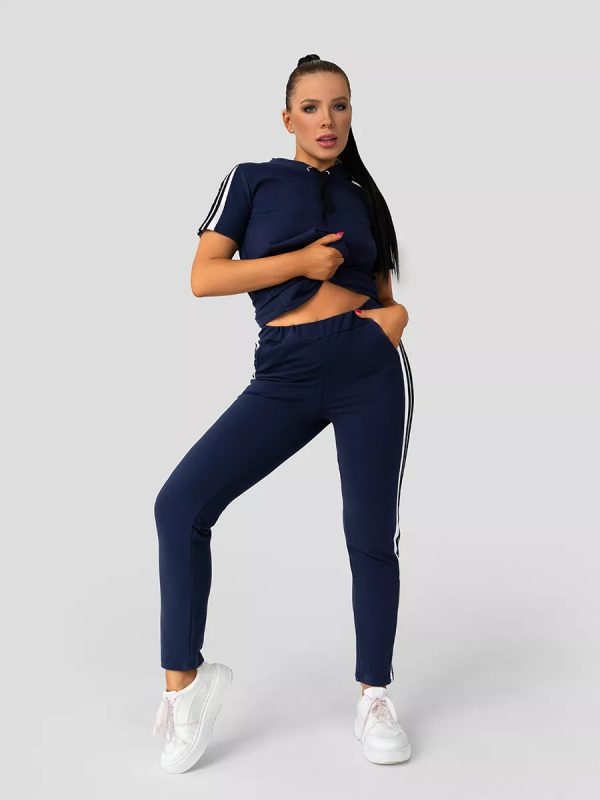 Модный, удобный спортивный женский костюм с капюшоном, карманами. Изготовлен из ткани — футер.