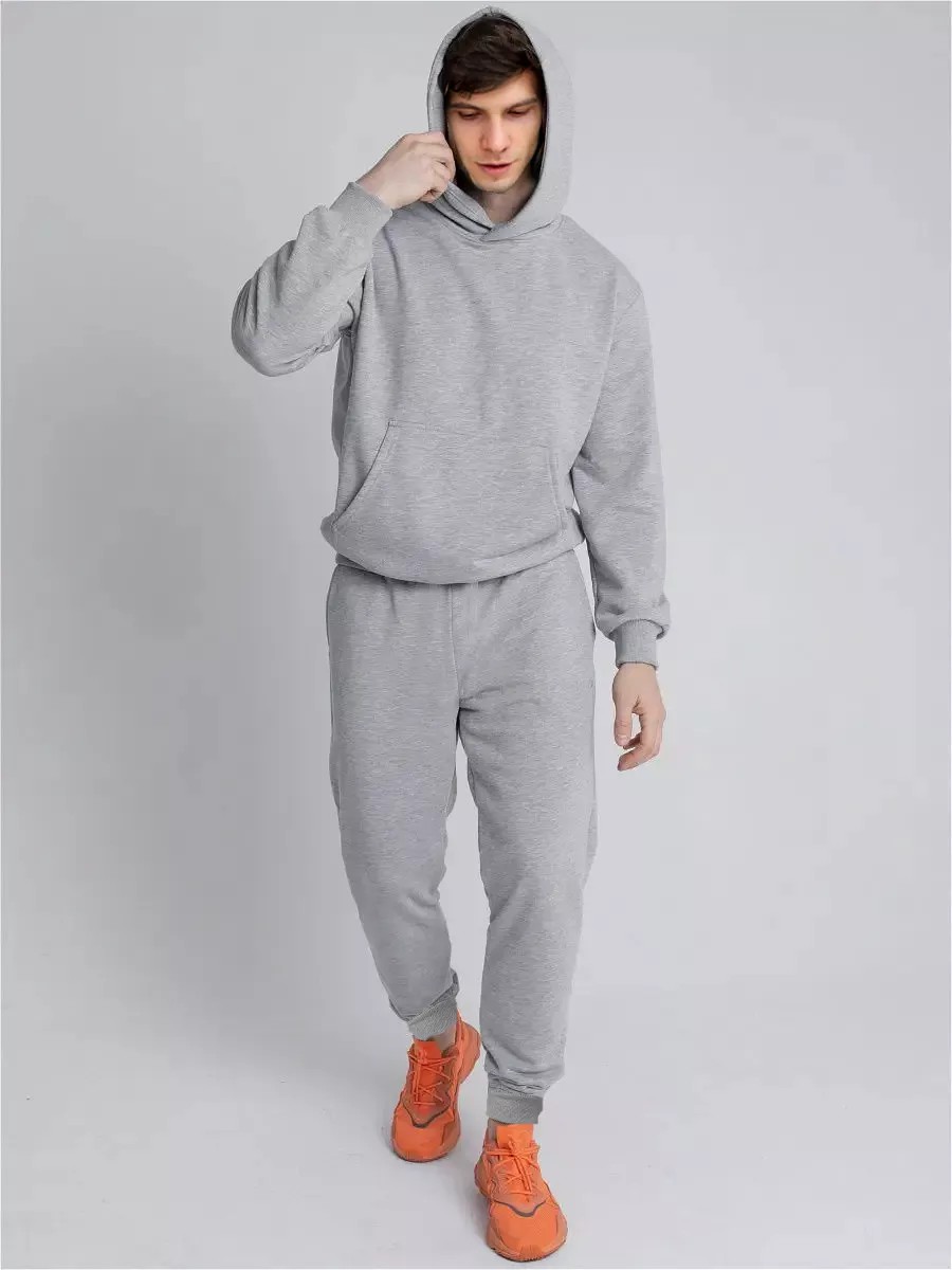 Спортивный МУЖСКОЙ костюм без начеса выполнен из качественного футера 3-хнитка петля. Спортивный костюм для мужчин — одна из базовых вещей. За счет удобного лекала, костюм превращается в спортивную форму для тренажерного зала — в нем будет комфортно. Домашний костюм — прекрасный вариант для повседневной носки. Чуть свободный крой худи и джоггеры на эластичной не тугой резинке — идеальный фасон для спорта или туризма. Манжеты худи и спортивных брюк выполнены из эластичного кашкорсе в цвет основной ткани, что позволяет регулировать длину штанов — подойдет и для высоких, и для невысоких. Модельный ряд включает большие размеры. Спортивный костюм станет универсальной одеждой для прогулок, активного отдыха, туризма, для дома, улицы и дачи, для похода в магазин, или поездки на пикник.