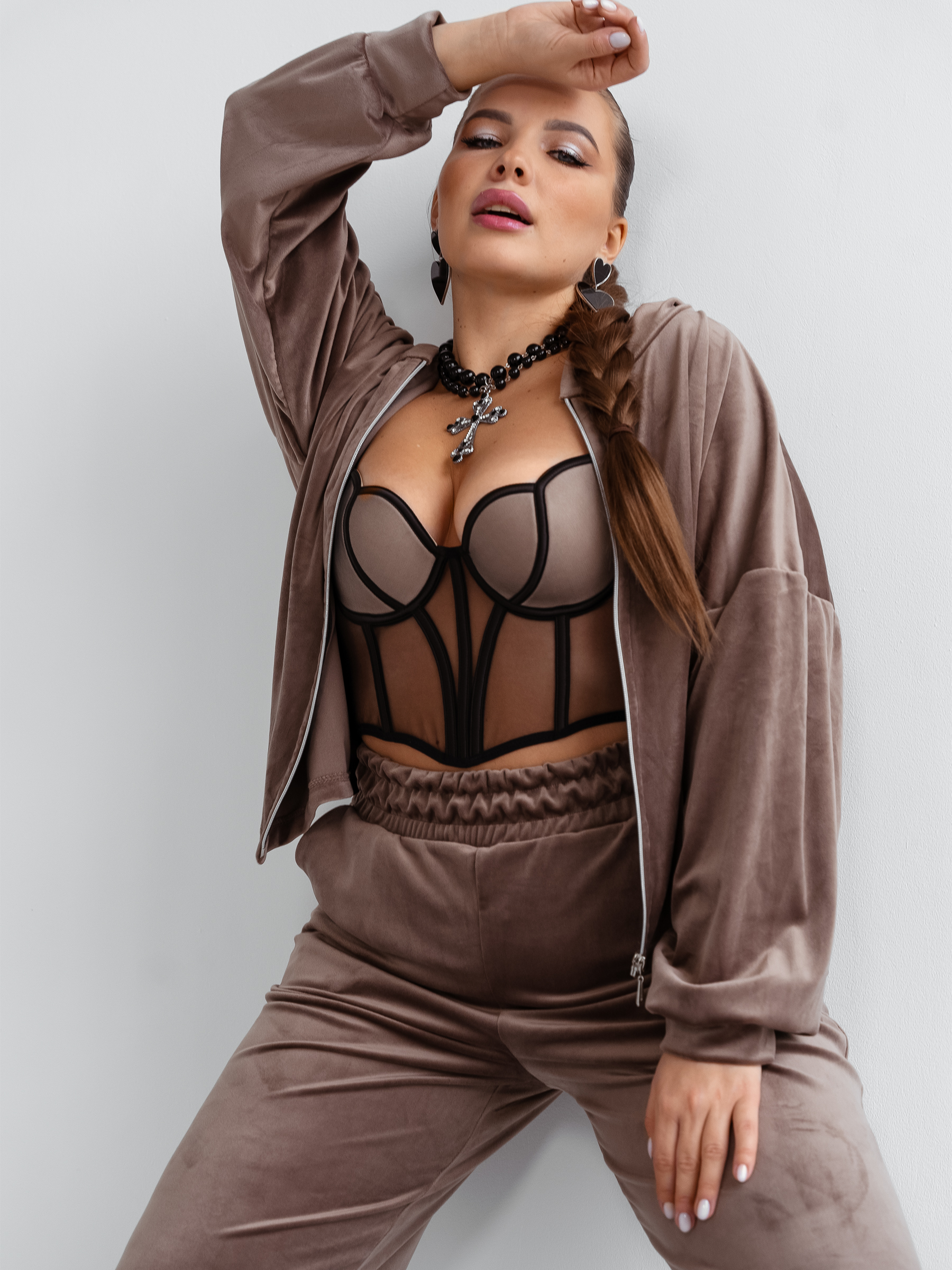 Будьте первым, кто оставил отзыв “Костюм женский велюровый на молнии КС-077ФР/БЕЖ (Бежевый)”