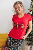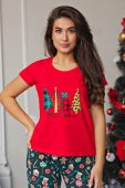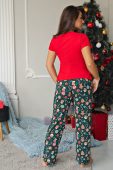 Женская пижама с брюками — один из любимых вариантов домашней одежды. Легкий и гигроскопичный трикотаж кулирка компакт пенье на основе хлопка с добавлением эластана сохранит вид на долгое время. В комплекте идут удобные и широкие брюки и свободная футболка с прикольным, новогодним принтом. Пижама подойдет для новогодней фотосессии и в качестве подарка маме, сестре, подруге, дочке.