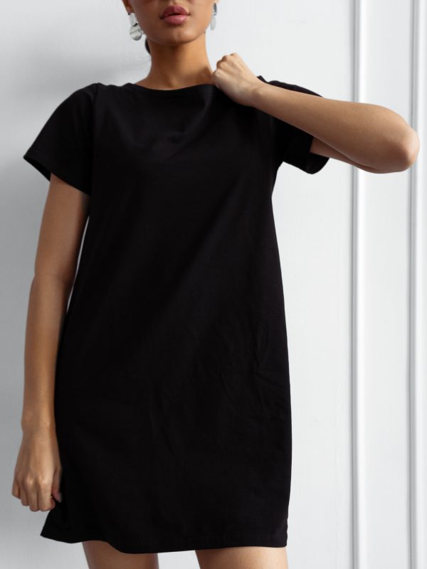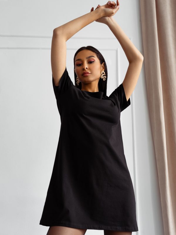Стильное женское платье-футболка, свободного кроя, черного цвета. Выполнено из кулирки с лайкрой.