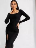 Стильное платье с квадратным вырезом декольте из мягкого эластичного хлопкового полотна с добавлением лайкры. Элегантное платье, словно футляр, можно отнести к базовым элементам гардероба, которые должны быть в шкафу у каждой женщины. Изделие с длинными рукавами и соблазнительным разрезом на ноге. Отличный вариант на каждый день!