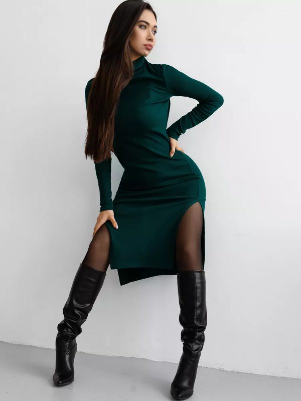 Стильное платье-водолазка . Элегантное платье, словно футляр, можно отнести к базовым элементам гардероба, которые должны быть в шкафу у каждой женщины. Изделие с длинными рукавами, воротником-стойкой и соблазнительными разрезами на ноге. Отличный вариант на каждый день!