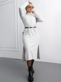 Стильное платье-водолазка из мягкого эластичного хлопкового полотна с добавлением лайкры. Элегантное платье, словно футляр, можно отнести к базовым элементам гардероба, которые должны быть в шкафу у каждой женщины. Изделие с длинными рукавами, воротником-стойкой и соблазнительными разрезами на ноге. Отличный вариант на каждый день!